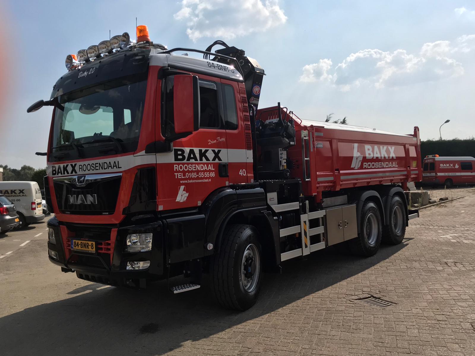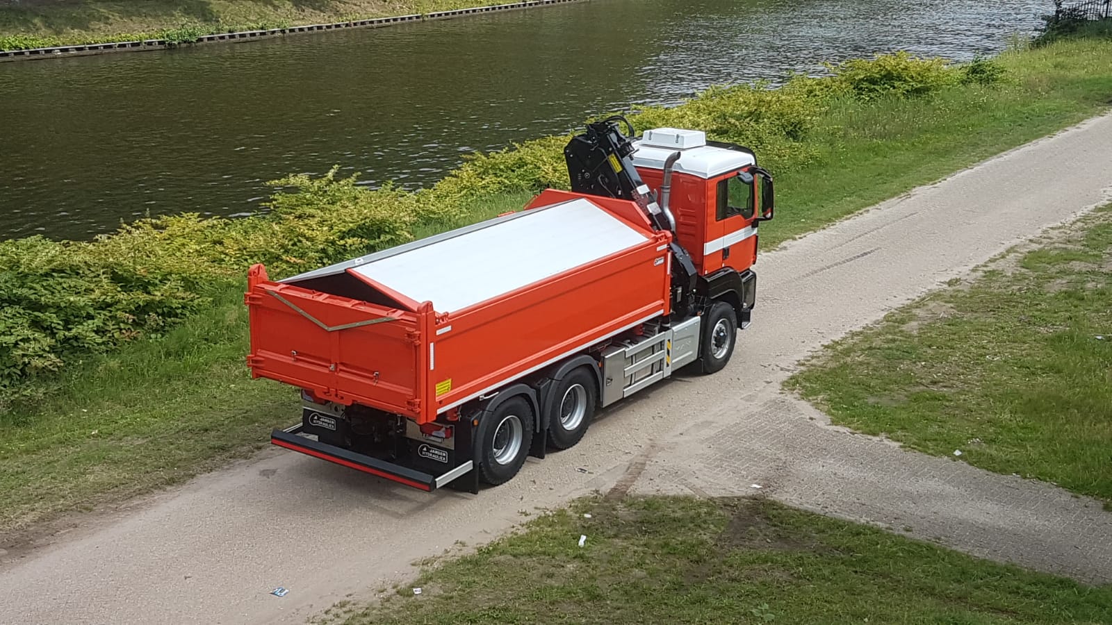 HMF autolaadkraan met een HYVA 2-zijden kipper voor Bakx Roosendaal