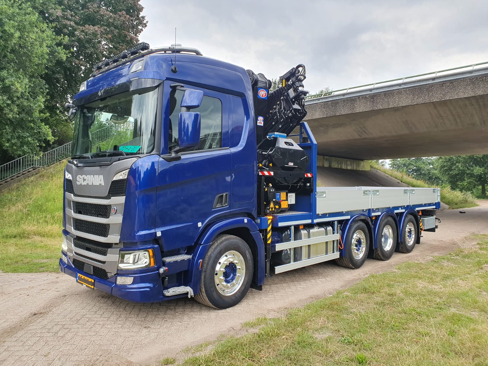 HMF autolaadkraan met een JHS open laadbak voor Veldstaal Group
