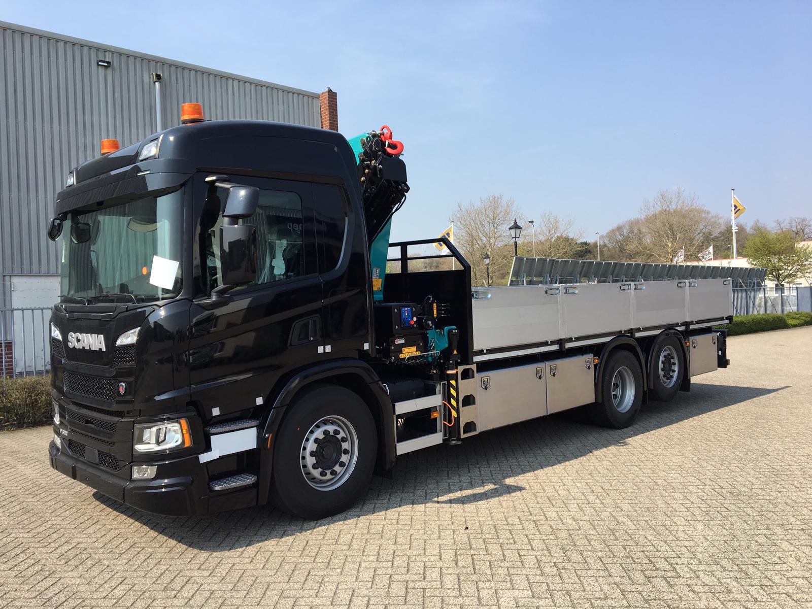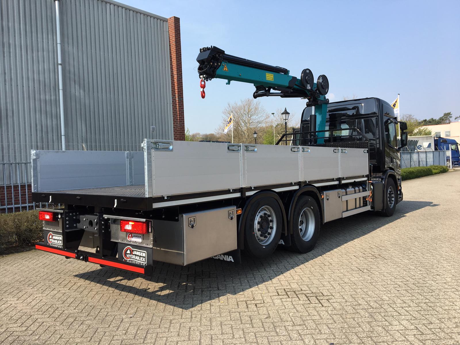 HMF autolaadkraan met JHS open laadbak voor Richard Josten Maatwerk in Metaal