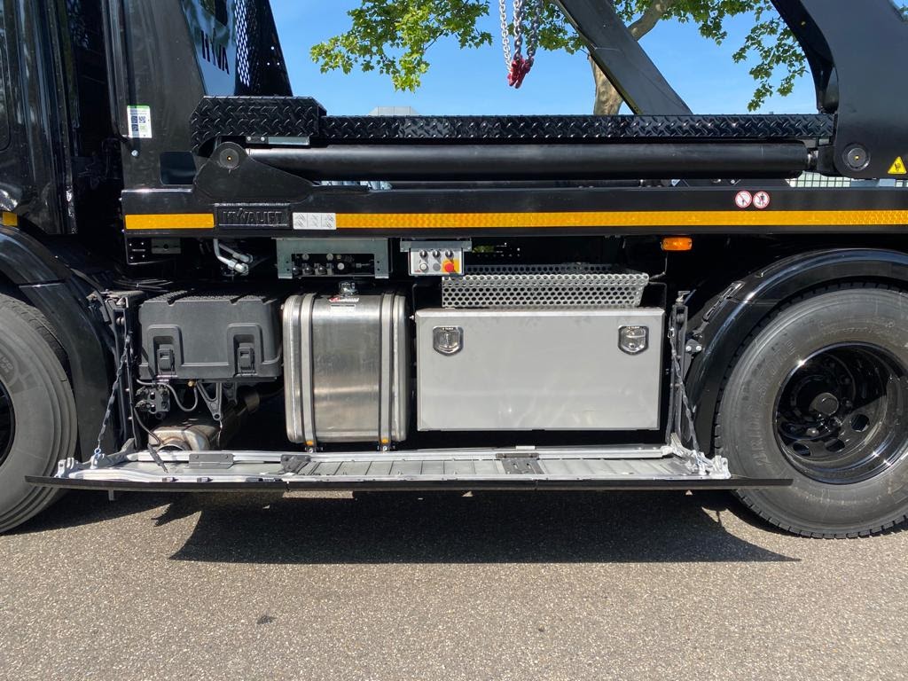 Met radiografische & buiten bediening en pneumatische kiphaak. Daarnaast zijn de hydrauliektank en gereedschapskist weggewerkt achter uitklapbare sideskirts.