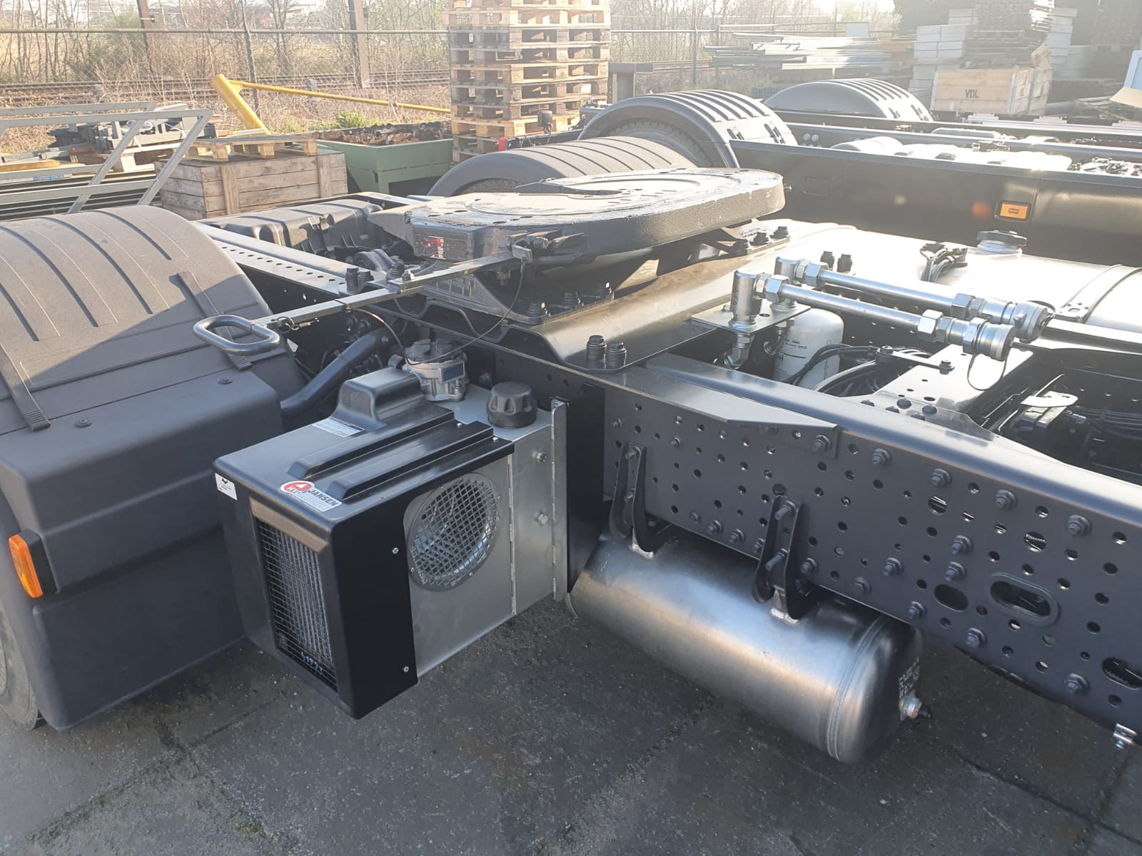 - HYDRPACK installatie bestaande uit een hydraulisch aangedreven oliekoeler, retour filter, hydrauliek tank en regelventiel, gemonteerd in een behuizing welke direct aan chassis wordt gemonteerd.