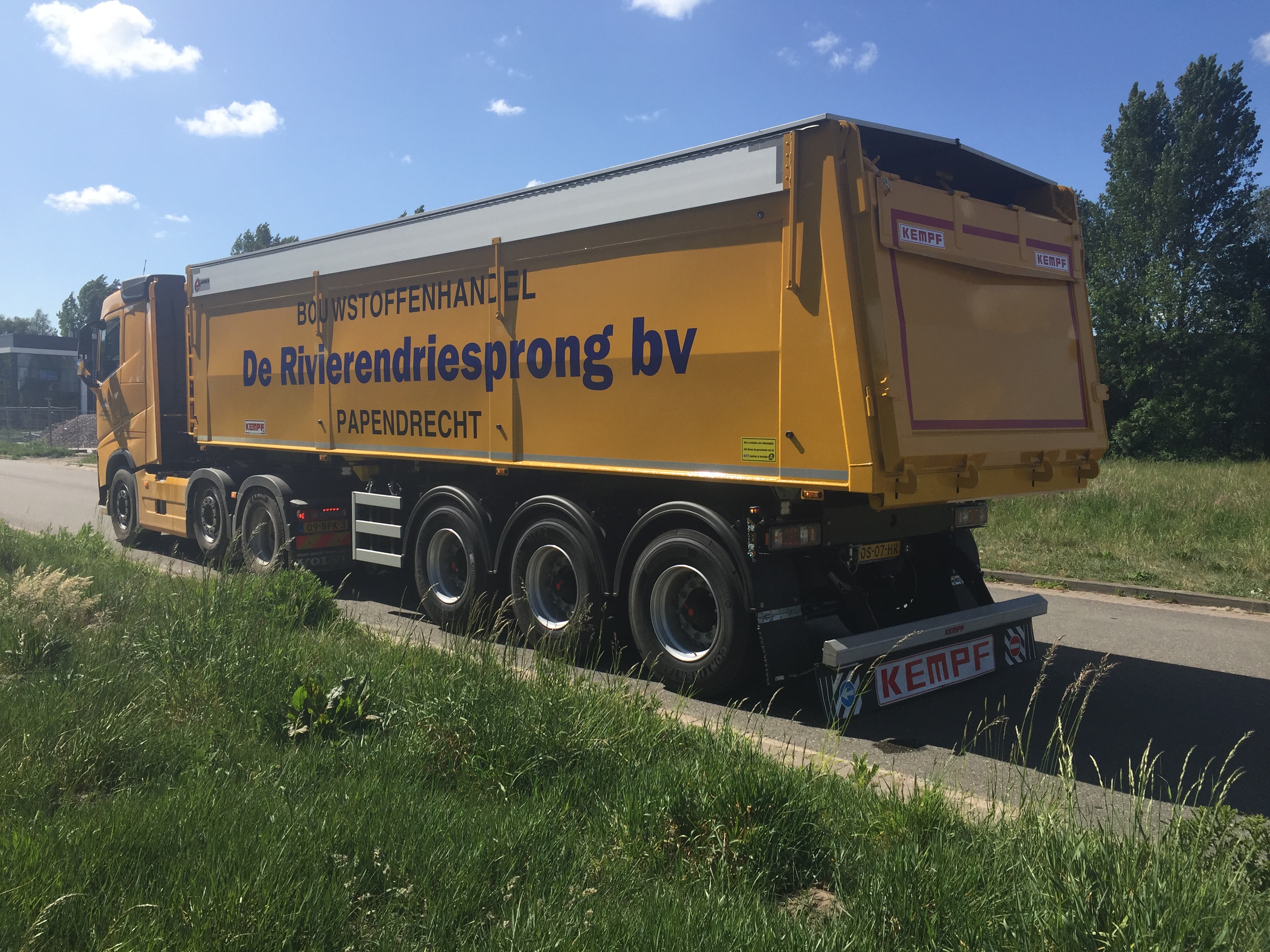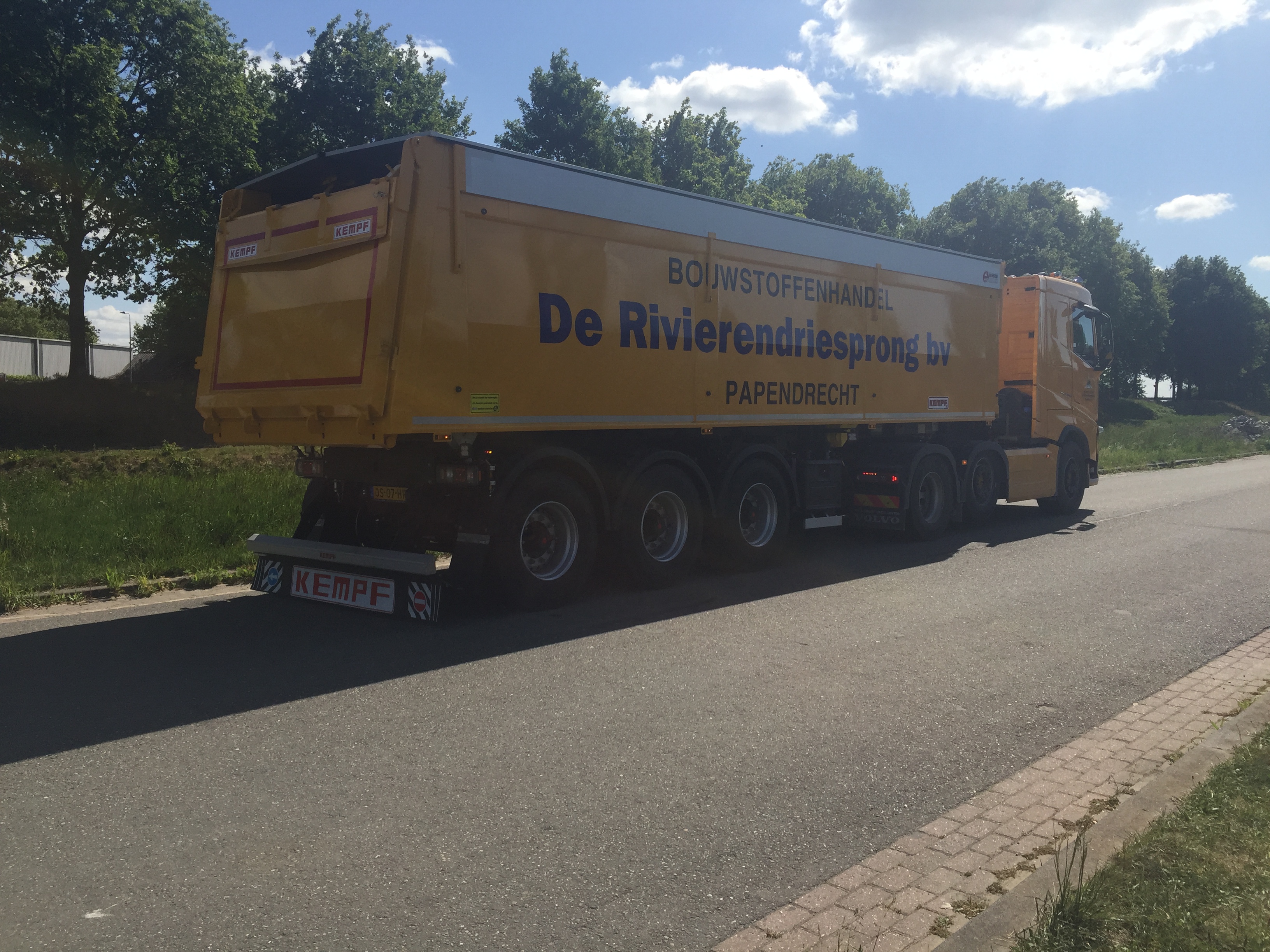 Deze stalen kippertrailer is geïsoleerd met isolatiemateriaal en heeft een ingebouwde camera aan de achterzijde. Op de Volvo trekker hebben wij een complete JHS hydrauliek set opgebouwd en bij de trap aan de bijrijderskant een camera.