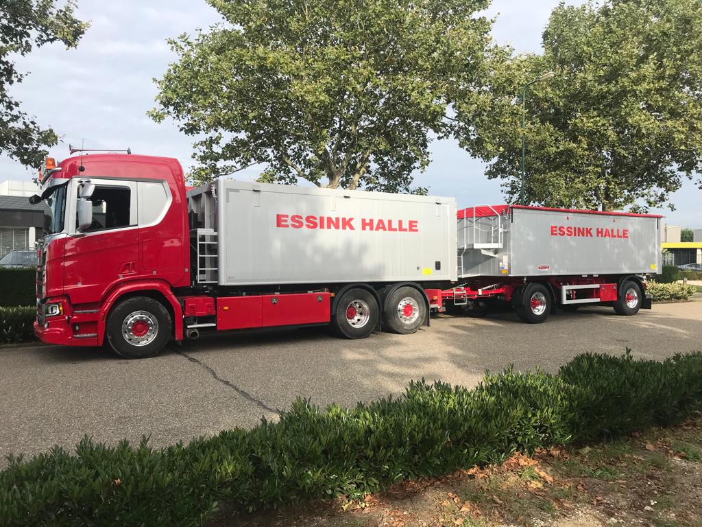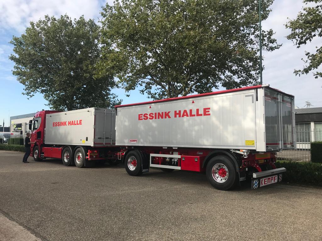 Kipperbak overbouw en een nieuwe KEMPF kipaanhanger voor Essink Halle